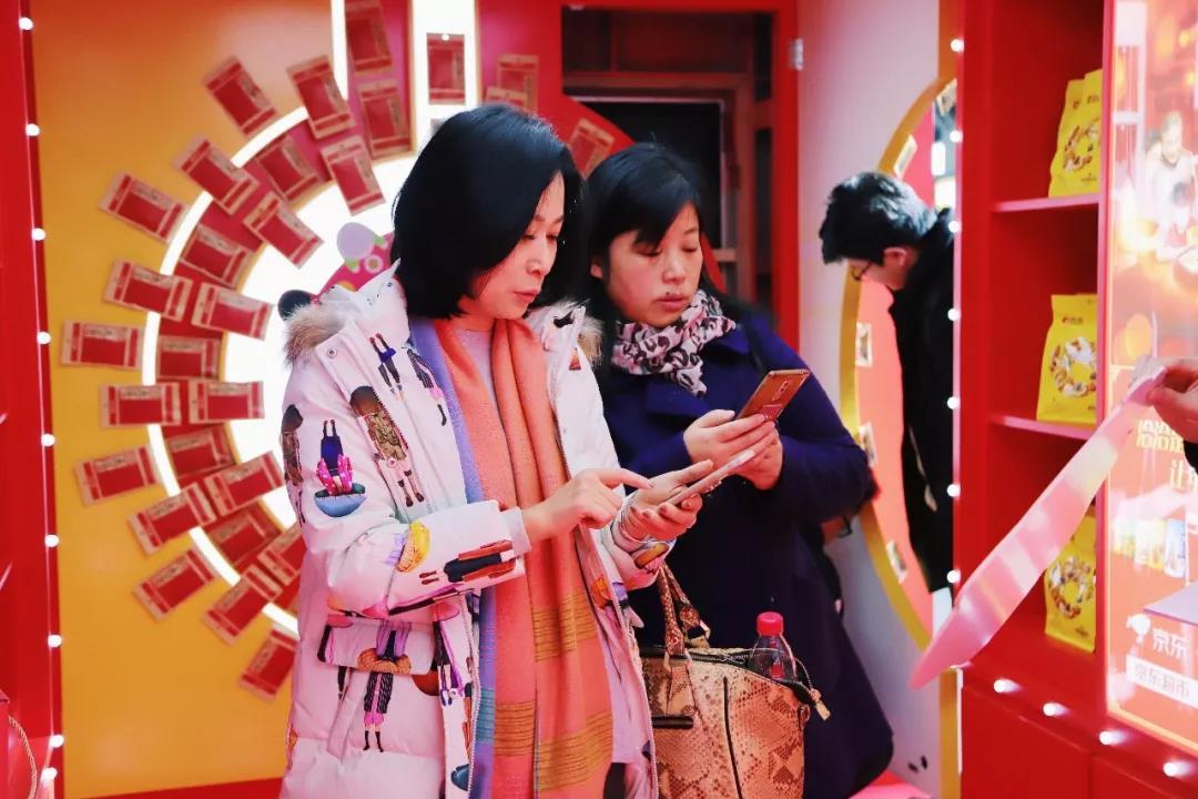 新春礼盒铺就的陈列墙,