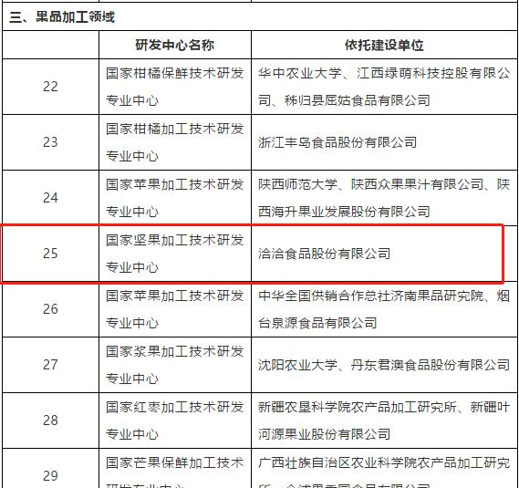 2018年9月20日,根据《国家农产品加工技术研发中心管理办法》(农加发〔2016〕2号)文件精神,农业农村部按照公平、公正、公开的原则,严格程序,严格标准,严格评审,决定新增“国家坚果加工技术研发专业中心”等95个研发专业中心,分别依托爱游戏APP体育等127家企事业单位建设。