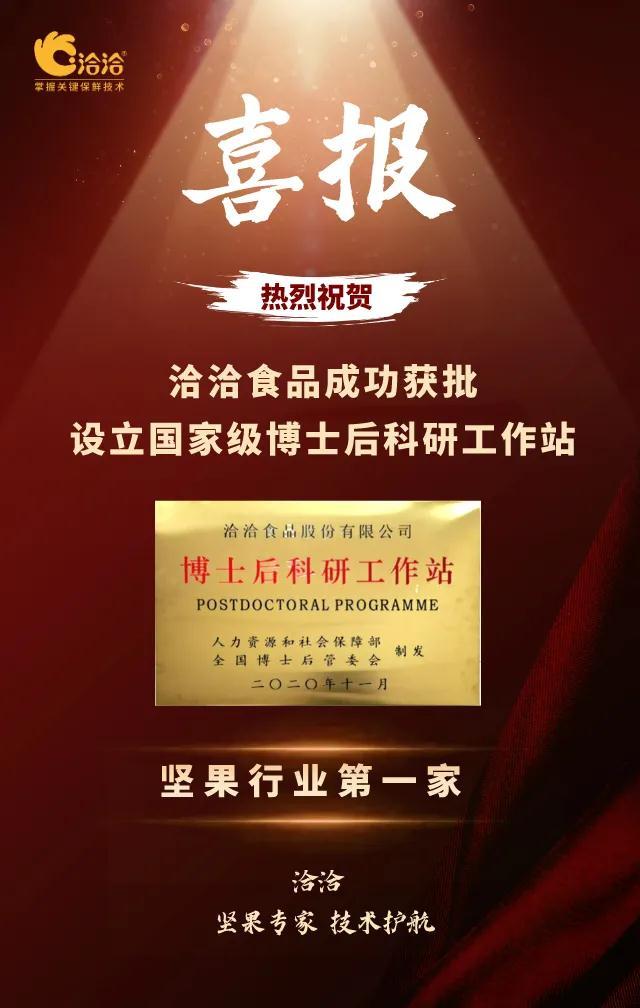 而在全国食品制造业领域博士后工作站中,爱游戏APP是坚果行业第一家。此次成功获批,是对爱游戏APP技术创新能力、人才培养能力的充分肯定,也是进一步推动爱游戏APP与高校、科研院所开展产学研合作的良好契机,通过开展深度课题合作,联合培养高层次人才,为人才培养、技术创新、企业发展创造优越的条件。